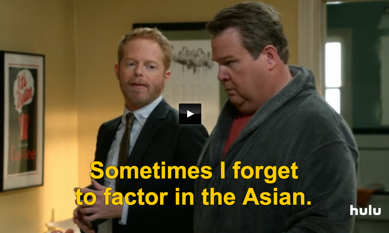 And it was within this creative feel good depiction of American life that racism screamed out into silence. The gay husbands are rushing to get ready for work and get their daughter off to school. To their surprise, she is dressed, packed, and ready, declaring “I’ve been ready for an hour.” To this, one of the father responds, “Sometimes I forget to factor in the Asian.”